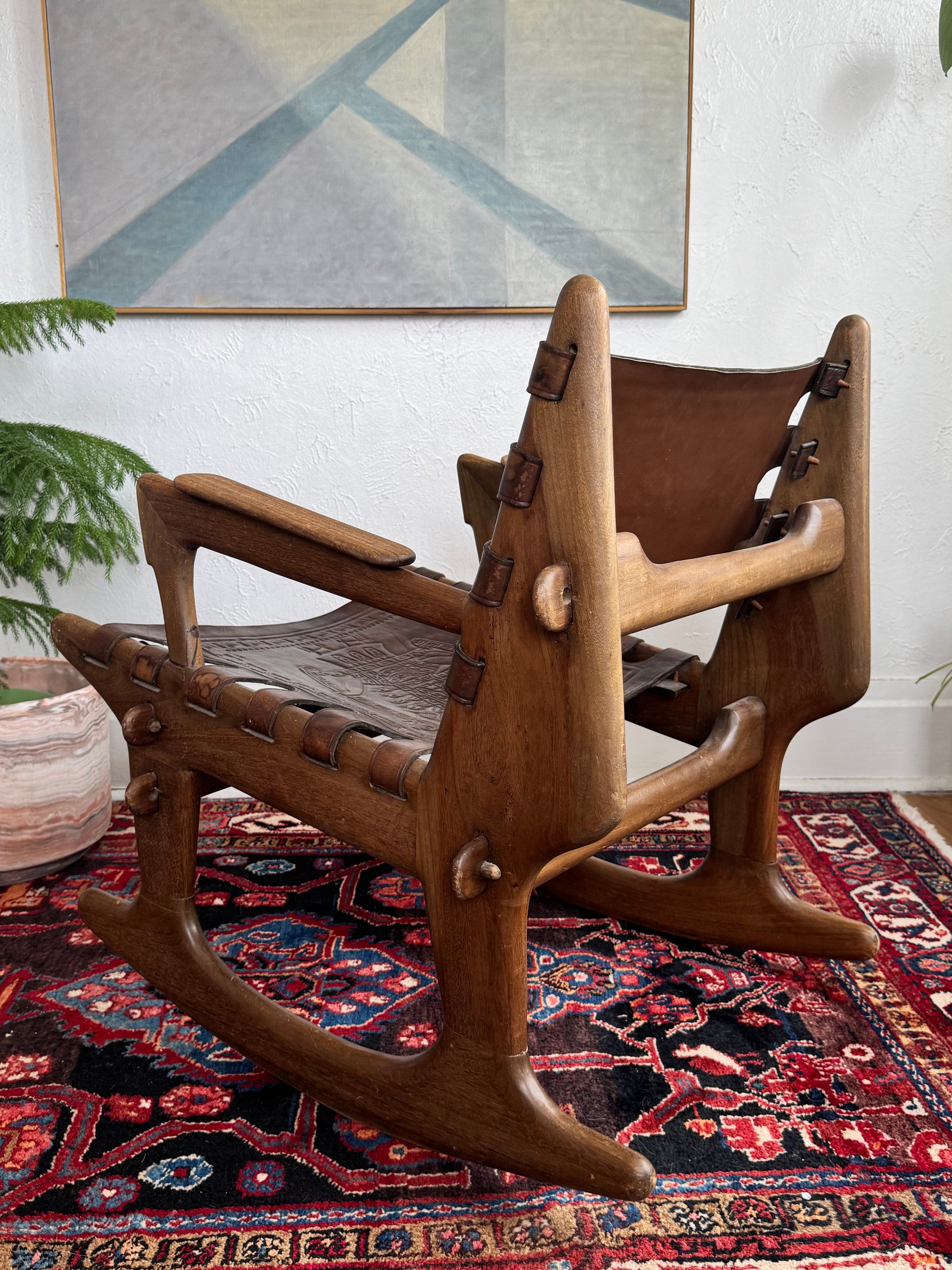 1960s Angel Pazmino Wood and Leather Sling Rocker