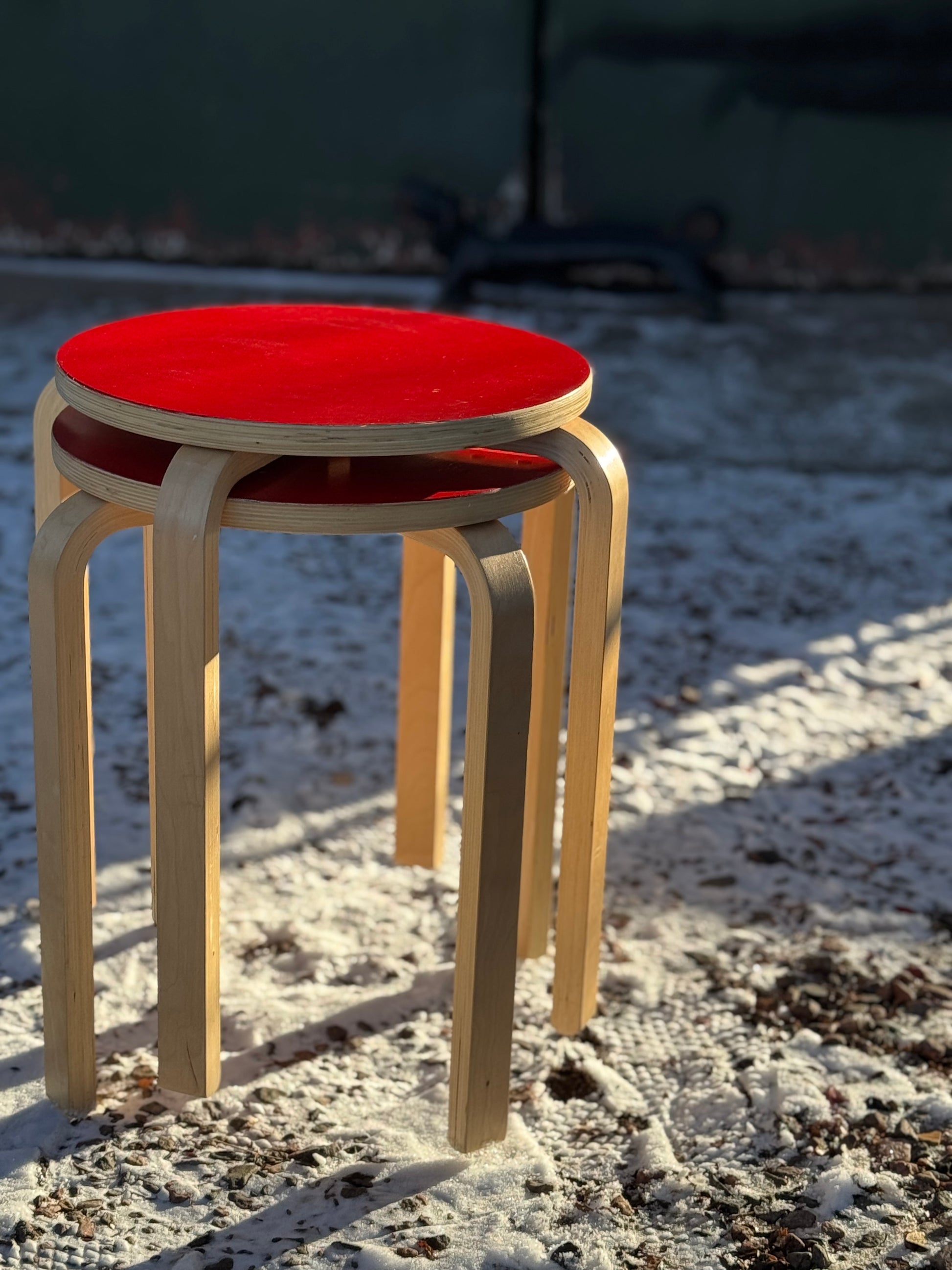 Bentwood Stools w/ Red Enamel Tops