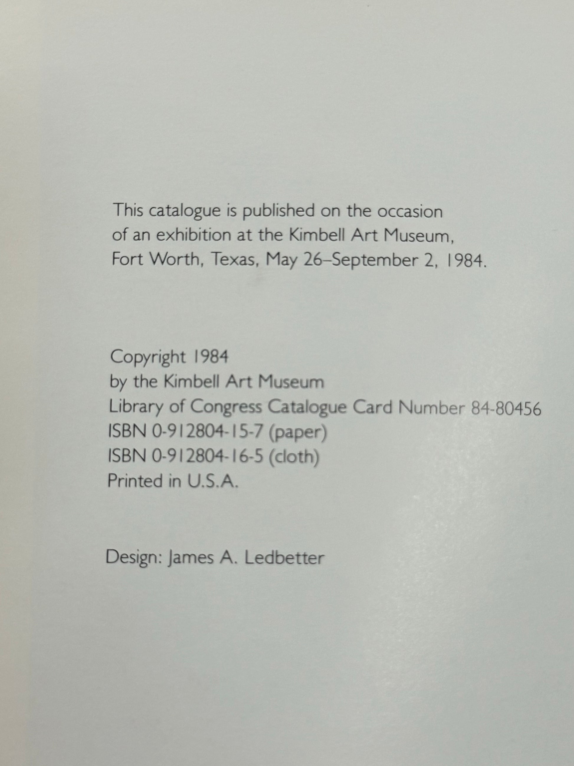 For the 1984 Kimbell Art Museum Exhibition in Fort Worth, Texas.